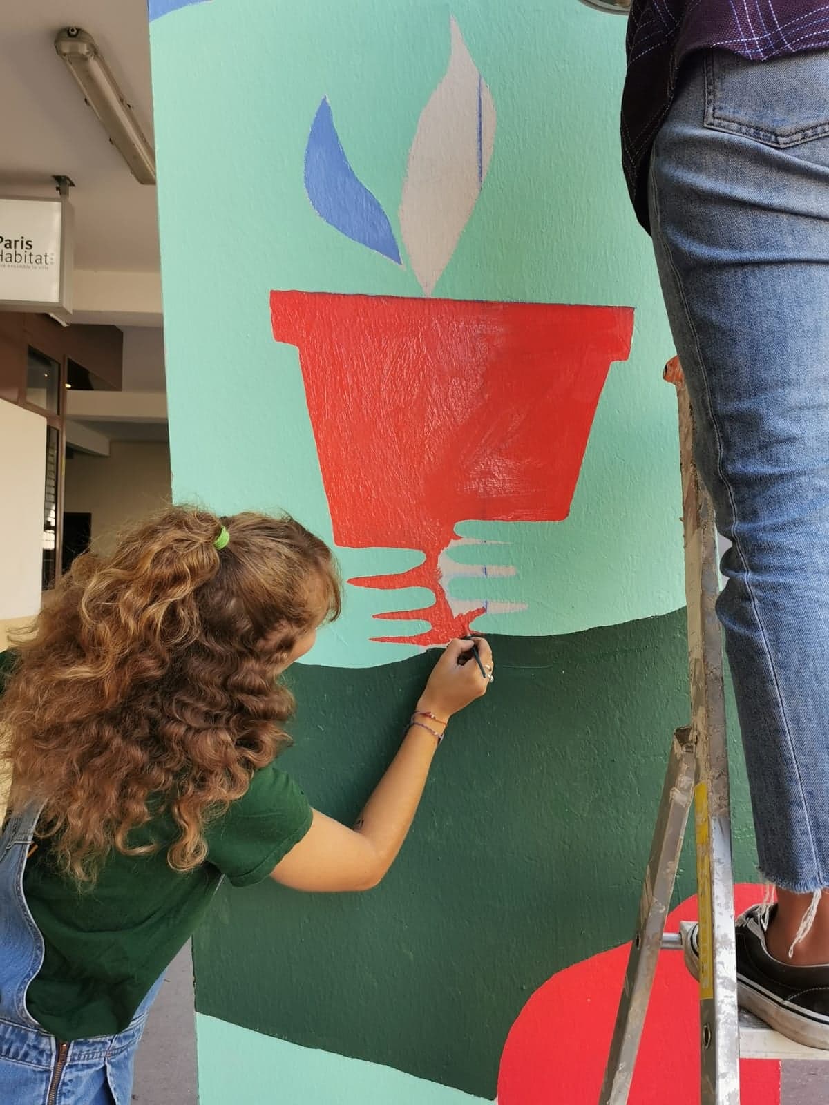 Plusieurs fresques, imaginées par la graphiste Diane Bousquet, ont été réalisées afin de mettre en valeur les histoires des habitants, tout en embellissant les espaces communs.
