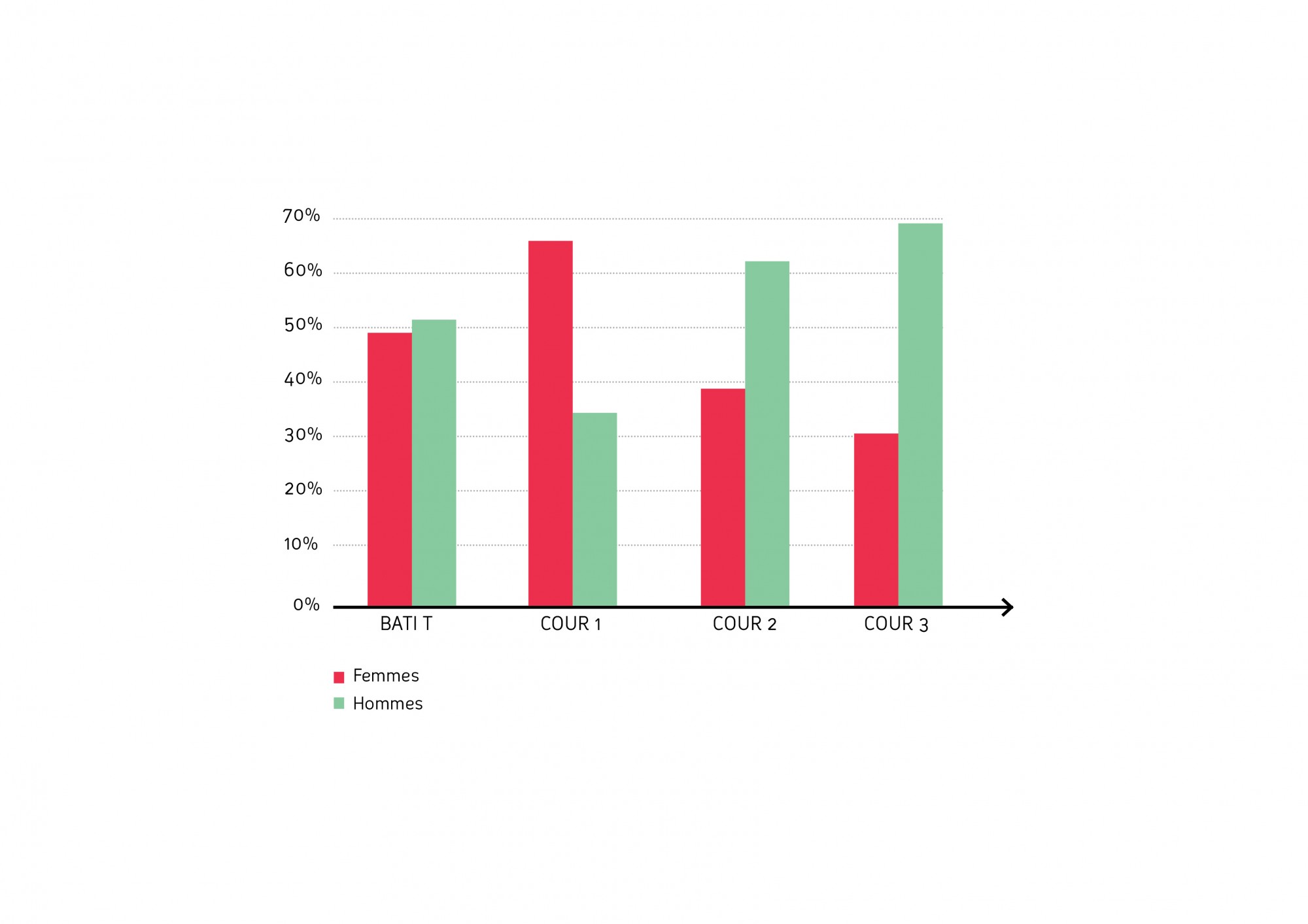 Dans un premier temps, notre équipe s’est immergée sur le site afin de comprendre les différentes relations qui se nouent entre les usagers et les espaces. Pour cela, nous avons développé 2 types d’outils:
